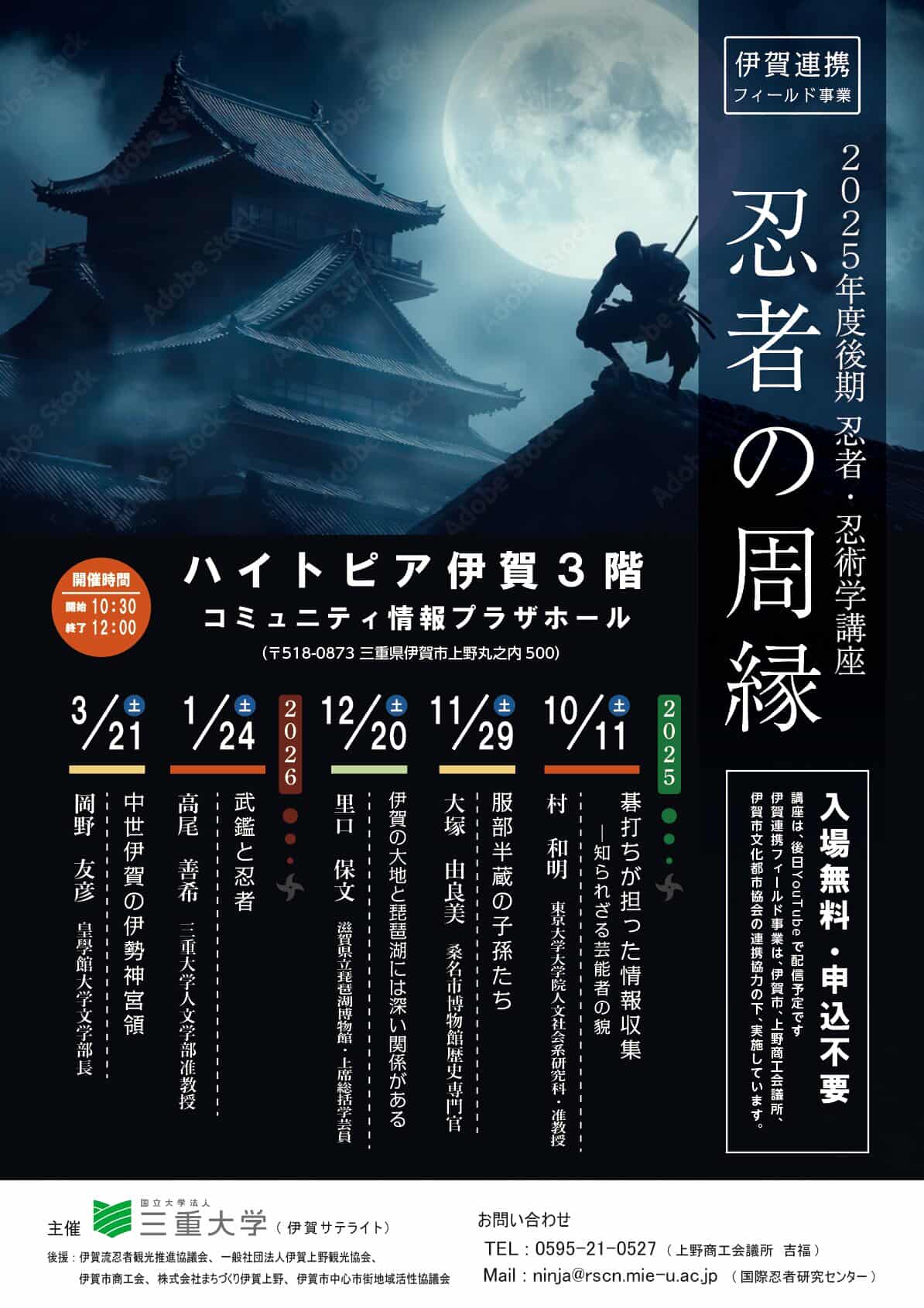三重大学伊賀連携フィールド事業 忍者・忍術学講座 2025年度後期講座のお知らせ